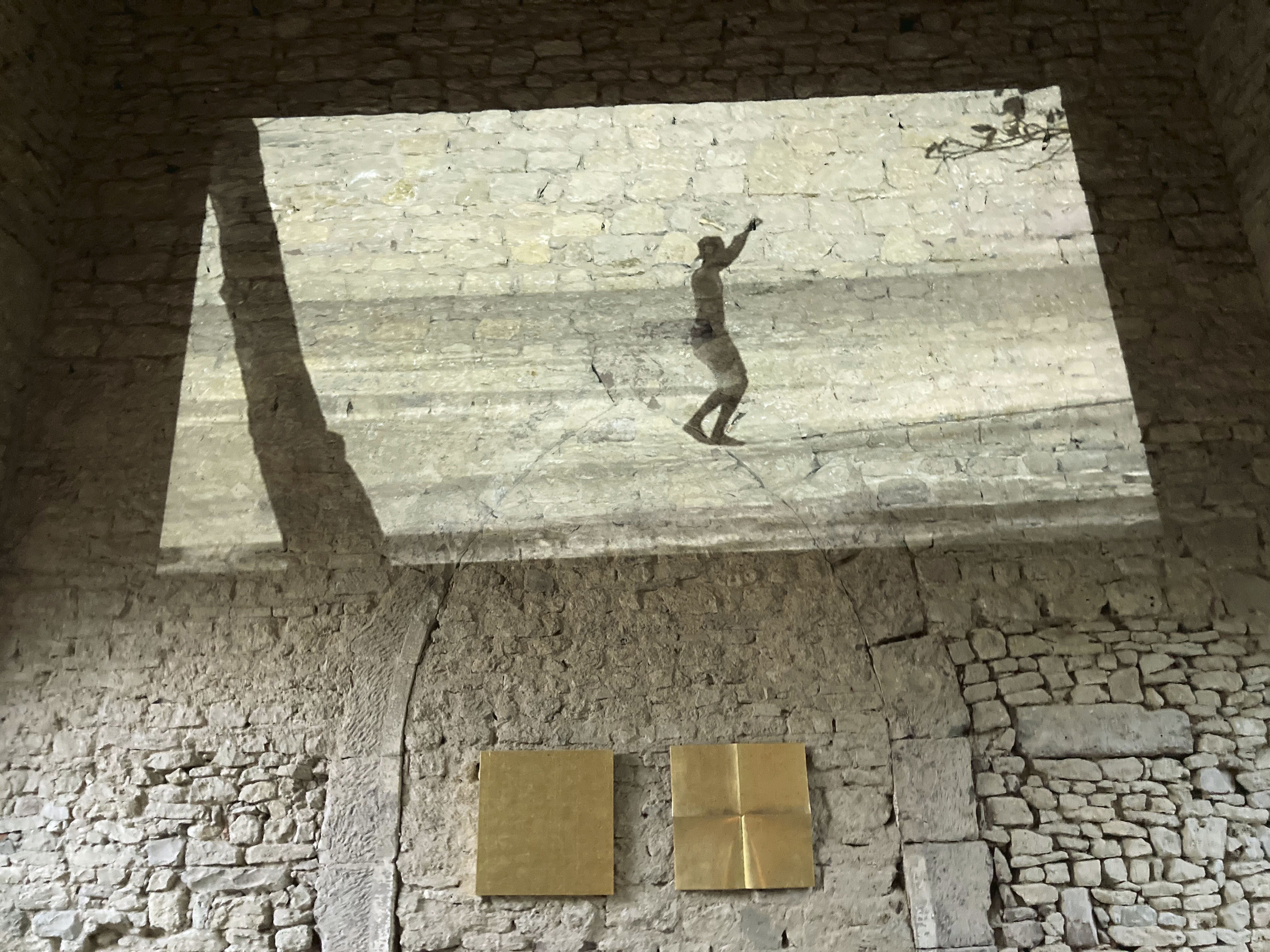 Videoprojektionen der Künstlerin Leslie Huppert projizieren den Stellenwert der Kunst in der Krise auf das mittelalterliche Bauwerk