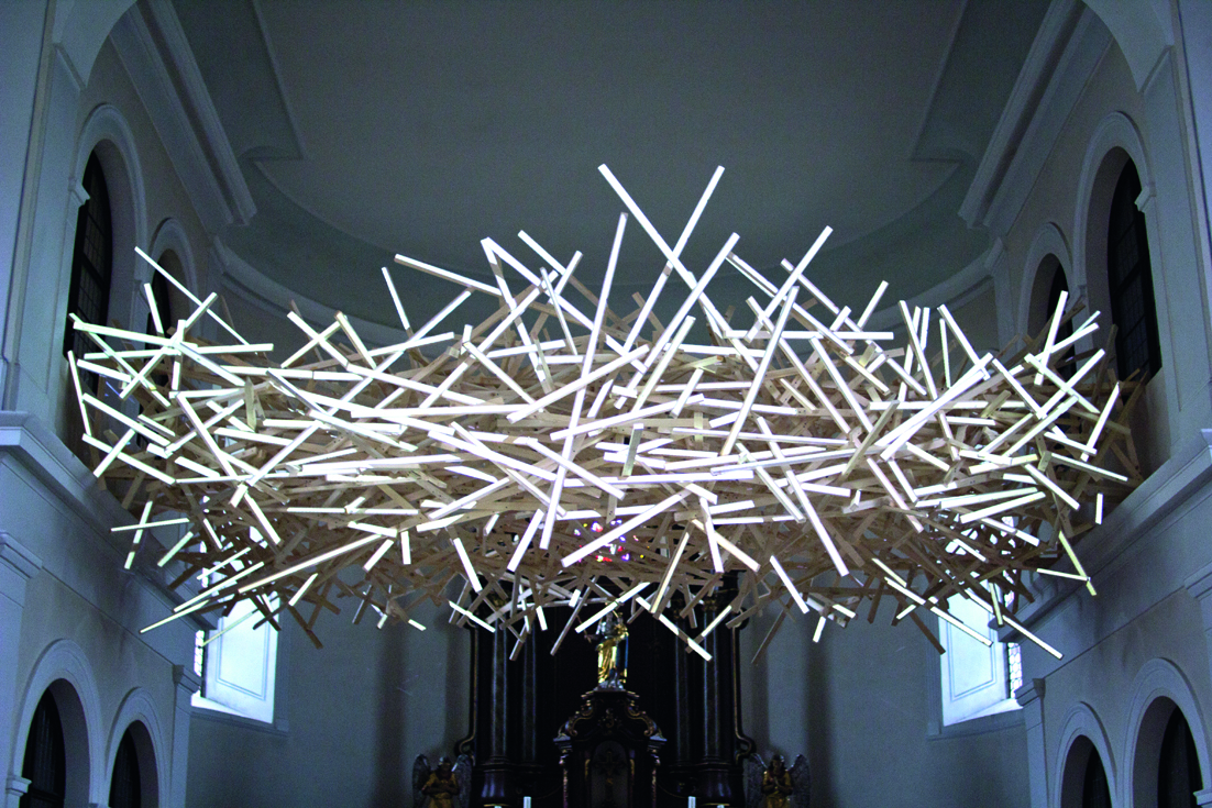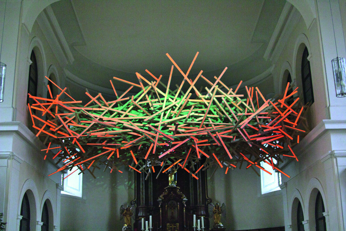 Im Rahmen der Passionsspiele Auersmacher formte der Bildhauer Martin Steinert über dem Altar der kath. Kirche Maria Heimsuchung in Auersmacher eine überdimensionierte Dornenkrone. Scheinbar schwebend über dem Altar zitiert das Bild eine Menschheit, die sich als Krone der Schöpfung versteht und den Planeten Erde zunehmend mit Dornen übersät. Der Lichtkünstler François Schwamborn hatte auf diese Skulptur der Dornenkrone 2020 eine Lichtinstallation projiziert, die die differenten Sichtweisen und Beweggründe der Menschheit zur Zukunft der Erde zum Ausdruck brachte.