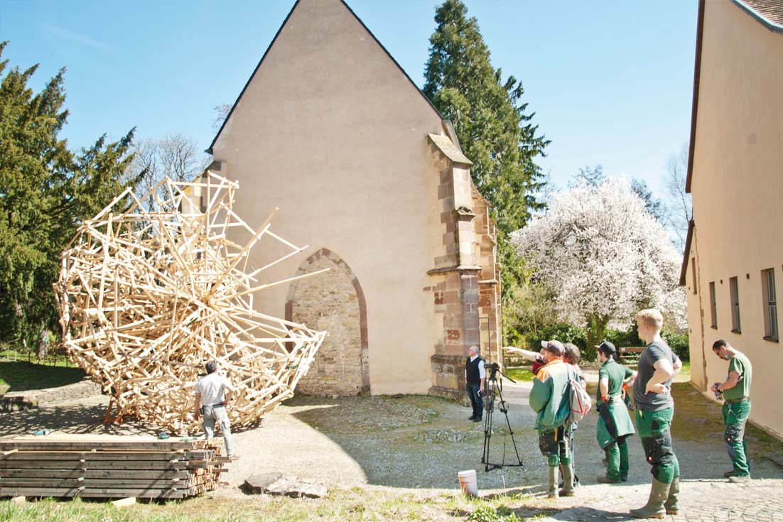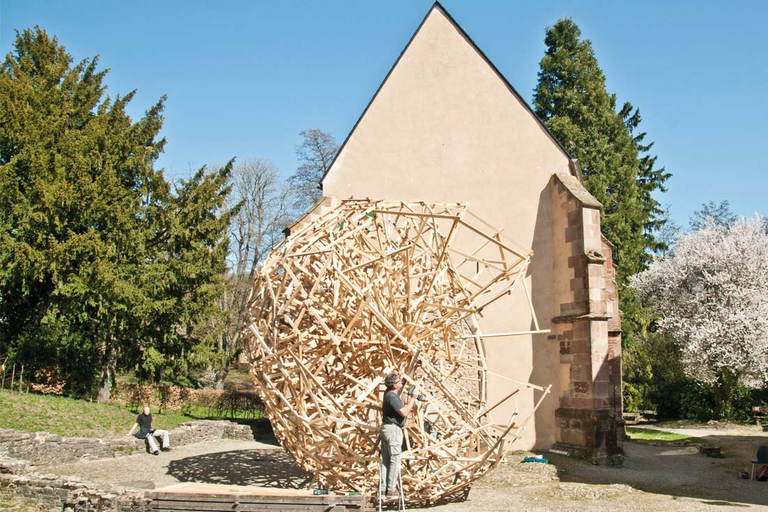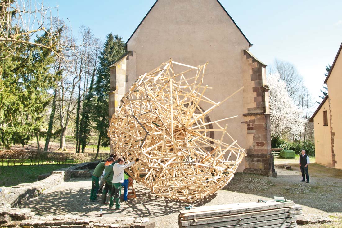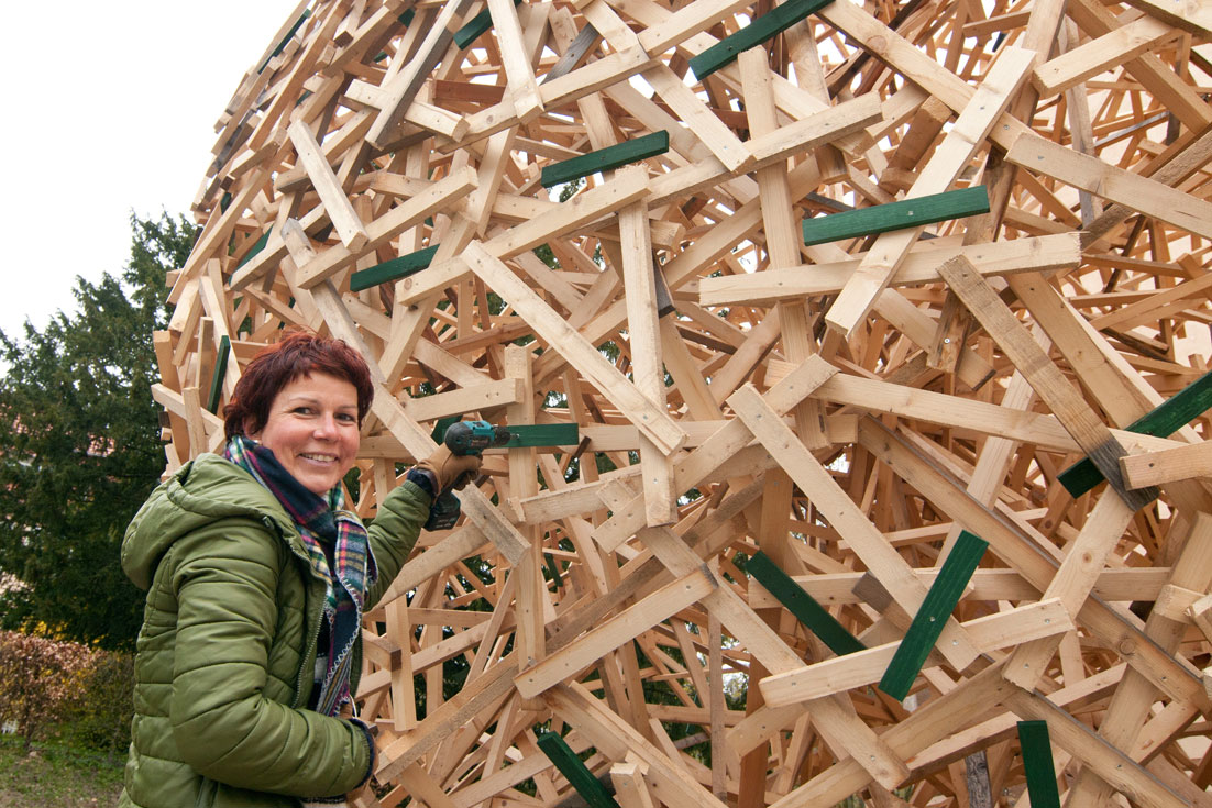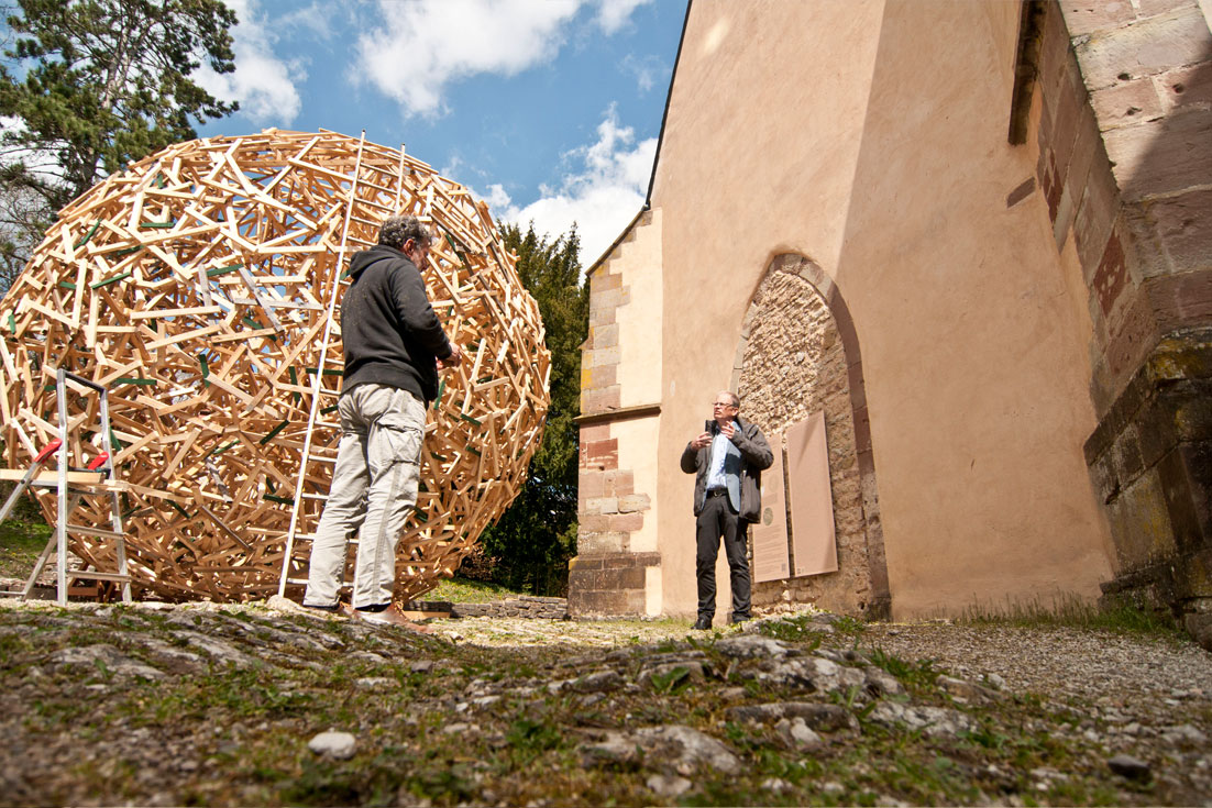Der Entstehungsprozess der Skulptur „Weltenkreis Erde“ vollzog sich unter der Mitwirkung/Beteiligung von Menschen vor Ort. Die 714 Holzsegmente wurden von Beschäftigten der Lebenshilfe für Menschen mit Behinderung Obere Saar zugeschnitten und mit einer grünen Öko-Farbe eingefärbt. Mitarbeitende und Gäste des Wintringer Hofes konnten sich auf diese Weise schon in der Entstehungsphase der Skulptur aktiv am künstlerischen Prozess beteiligen und symbolisch einen Impuls für den Wandel setzen.