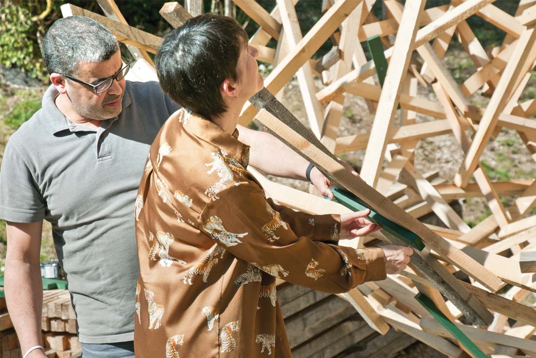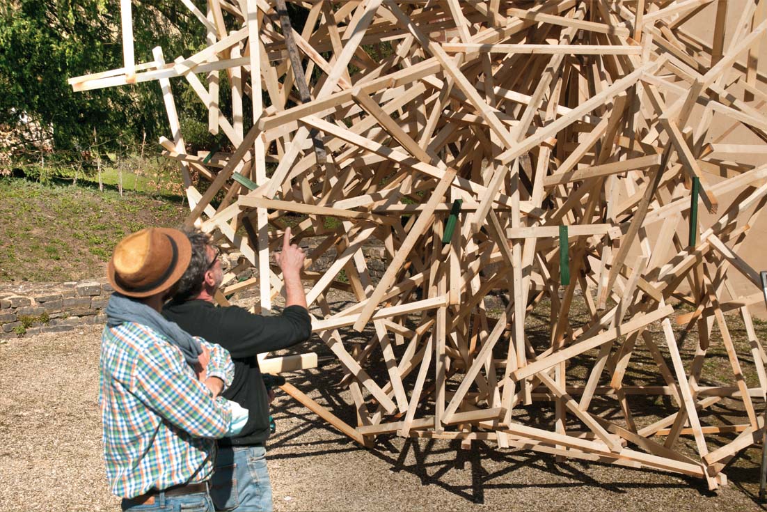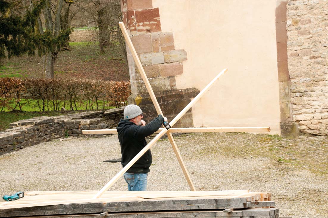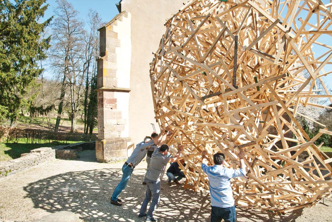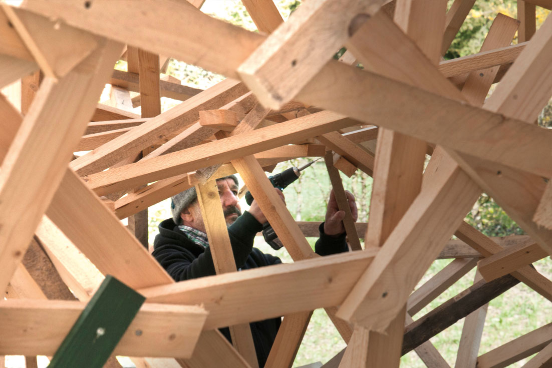 Der Entstehungsprozess der Skulptur „Weltenkreis Erde“ vollzog sich unter der Mitwirkung/Beteiligung von Menschen vor Ort. Die 714 Holzsegmente wurden von Beschäftigten der Lebenshilfe für Menschen mit Behinderung Obere Saar zugeschnitten und mit einer grünen Öko-Farbe eingefärbt. Mitarbeitende und Gäste des Wintringer Hofes konnten sich auf diese Weise schon in der Entstehungsphase der Skulptur aktiv am künstlerischen Prozess beteiligen und symbolisch einen Impuls für den Wandel setzen.