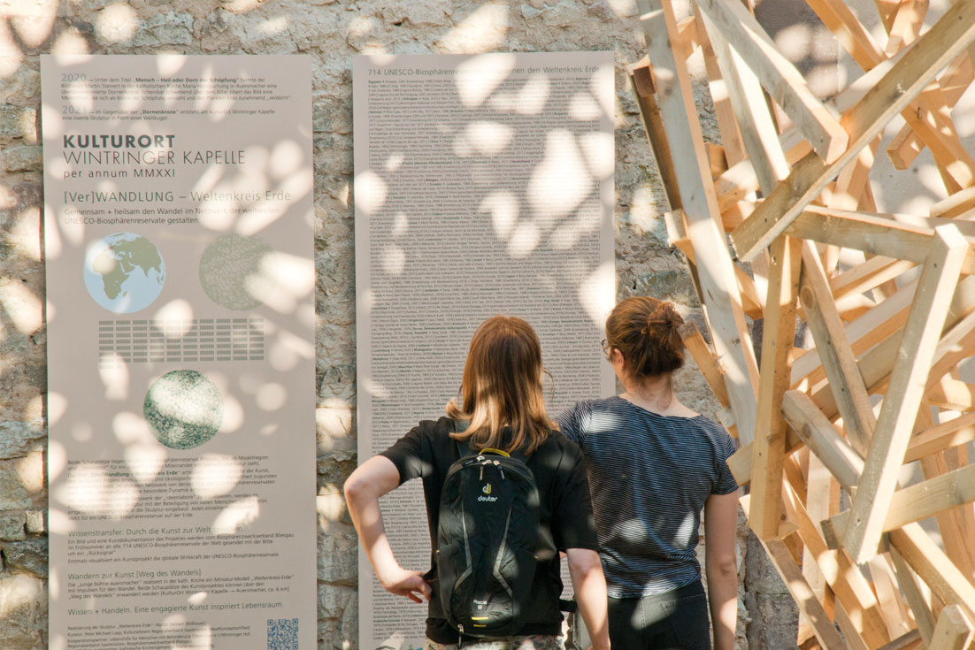 Mit der Vollendung der Skulptur „[Ver]Wandlung – Weltenkreis Erde am KulturOrt Wintringer Kapelle“ hat der Bildhauer Martin Steinert behutsam ein imposantes Bild zur Ästhetik des mittelalterlichen Refugiums geschaffen, dessen Struktur und Oberfläche auf den ersten Blick den globalen Netzwerkgedanken der UNESCO-Biosphärenreservate assoziiert. Die Konzeption des Kunstprojektes will es jedoch nicht ausschließlich bei einem ausdrucksstarken Ersteindruck bewenden lassen und sucht mit forschendem Blick weiter in den Wahrnehmungen der Betrachter, um den verwandelnden Charakter künstlerischer Prozesse offenzulegen.