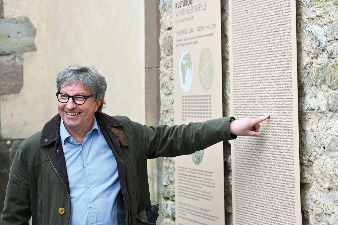 Um zwischen den Vorstellungen von nachhaltigem Leben und den aktuellen gesellschaftlichen Strukturen zu vermitteln, braucht es kreative Strategien und wir müssen sicher auch ganz neue und ungewohnte Wege erproben. Nur so kann sich ein tiefgreifender Wandel der kulturellen Grundeinstellungen bewerkstelligen. Dazu liefert der künstlerische Prozess des Kunstprojektes [Ver]Wandlung – Weltenkreis Erde am KulturOrt Wintringer Kapelle einen außergewöhnlichen Beitrag. Er bringt den Menschen über das Medium der bildenden Kunst auf einer emotionalen Ebene mit dem anstehenden ethischen und ökologischen Wandel in Verbindung. Ich freue mich sehr, dass es über dieses Kunstprojekt sogar gelungen ist, einen Austausch im Weltnetz der UNESCO-Biosphärenreservate anzustoßen.