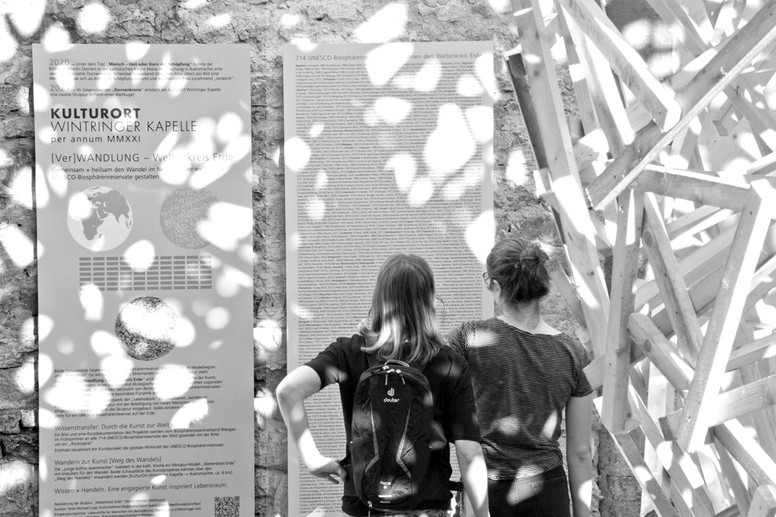 Die Bewahrung der Schöpfung ist die zentrale Menschheitsaufgabe des 21. Jahrhunderts. Entscheidend für einen erfolgreichen Wandel ist der Mut, alte Muster aufzubrechen und kleine unnötige Bestandserhaltung zu betreiben. Das sollte gut kommuniziert werden. Bislang wird unterschätzt, wie kulturelle Bildung für nachhaltige Entwicklung und eine gezielte engagierte Kunst dabei unterstützen kann. Die Gesellschaft sollte ein Bewusstsein dafür entwickeln, dass sie überkommene Strukturen hinter sich lassen muss, um eine neue und ökologisch tragfähige Wirklichkeit aufzubauen. Dazu braucht es Mut und Kreativität. Dieses Szenario beschreibt das neue Kunstprojekt [Ver]Wandlung – Weltenkreis Erde am KulturOrt Wintringer Kapelle im Spiegel des globalen Netzwerkes der UNESCO-Biosphärenrservate.
